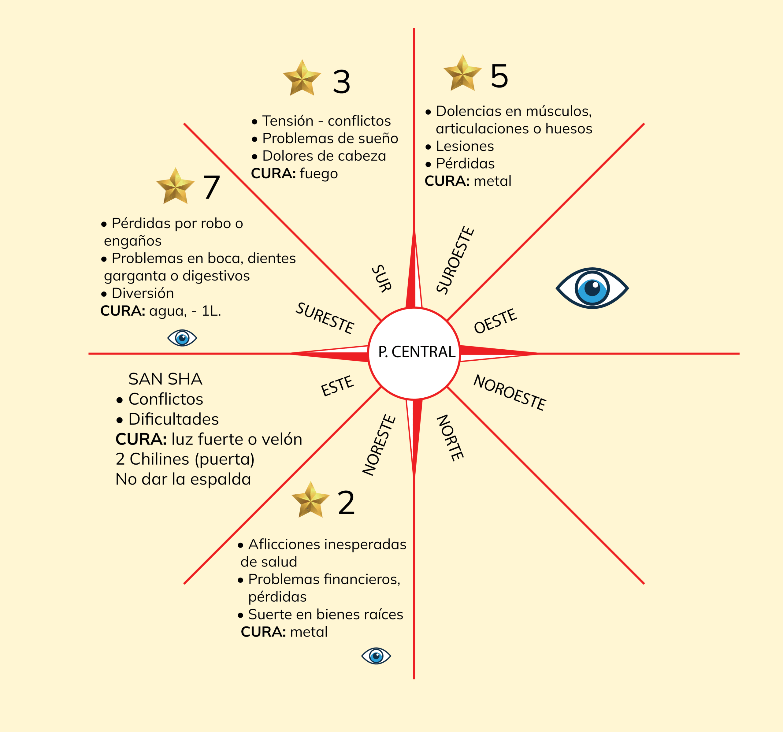 De manera preventiva, si alguno de estos palacios coincide en la puerta de entrada, en la cocina, una habitación o en su puesto de trabajo, ubique las curas mensuales sugeridas, o evite activarlos.